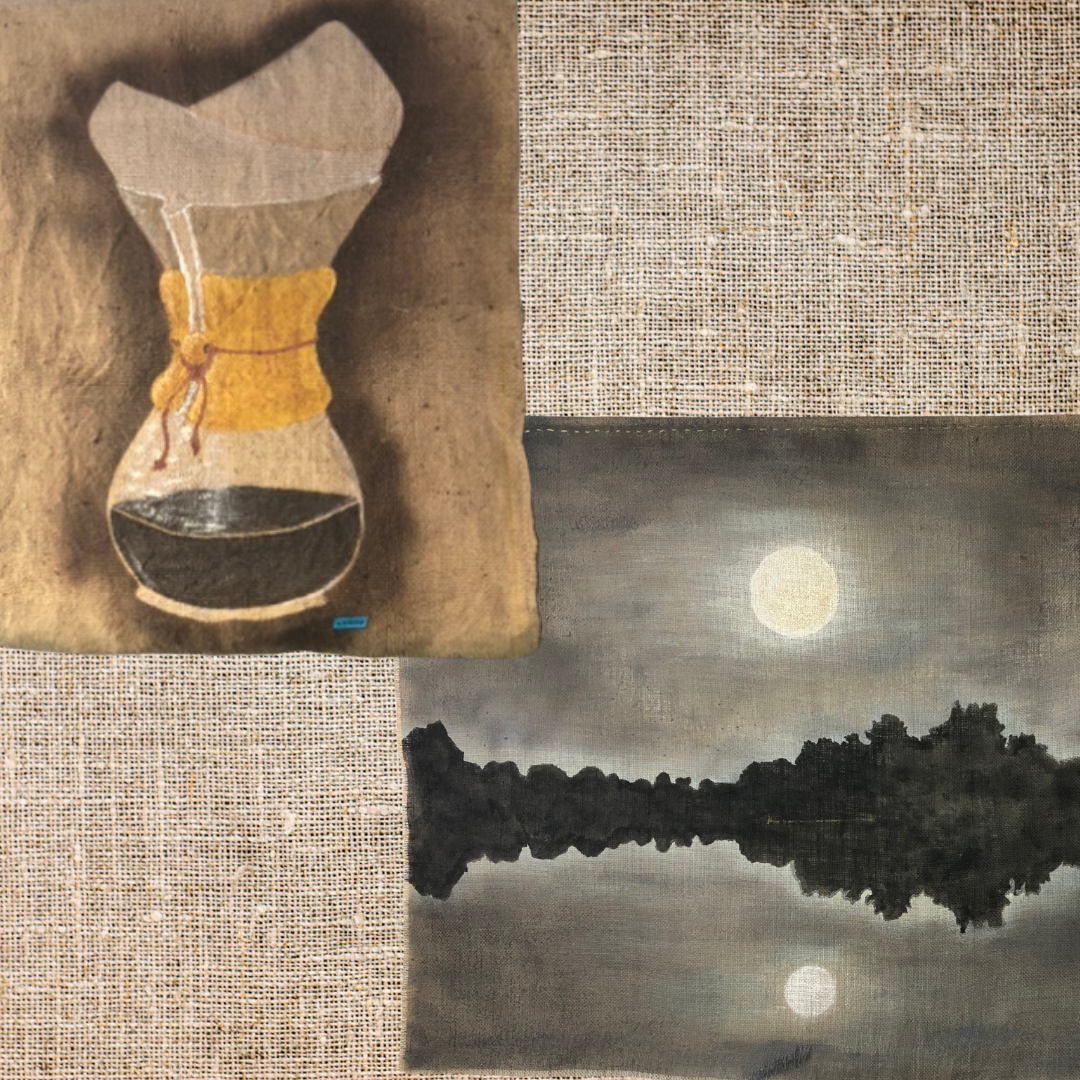 Je me consacre à la peinture sur toile de jute. Mais comme il n’y a pas de limite à la créativité, vous pouvez commander vos petits bonheurs sur mesure. Je réalise aussi des objets déco sur commande.